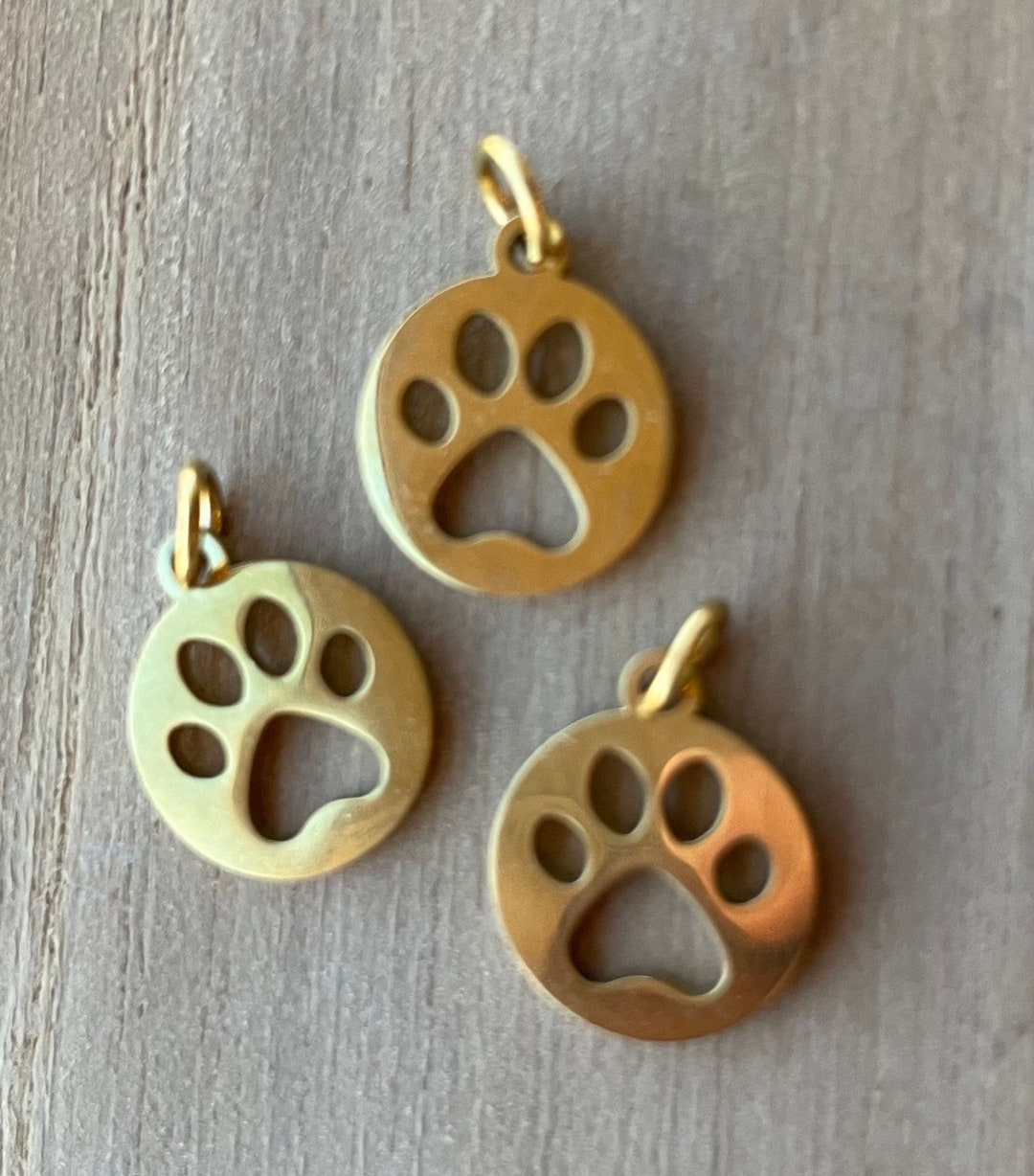 10pcs gold rhinestone dog paw print charm pendant 18k gold plated brass micro pave cubic zirconia pendant with loop. official custom paw print jewelry shop | we will engrave your pet's paw on our beautifully handcrafted rings, bracelets, or necklaces. tiny paw print charm, paw print necklace, pet lover gift, dainty necklace, gift for her, the stamped life check out our dog paw print charm selection for the very best in unique or custom, handmade pieces from our charms shops. Paw print charm bracelet in sterling silver. check out our paw print charms selection for the very best in unique or custom, handmade pieces from our charms shops. dogs are a big part of our lives and what better way to show that than with a sterling silver openwork paw print charm.